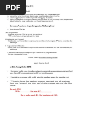Share to Twitter Share to Facebook Share to Pinterest. 10x - 4x 200. Berikut adalah dua cara mengira titik pulang modal.